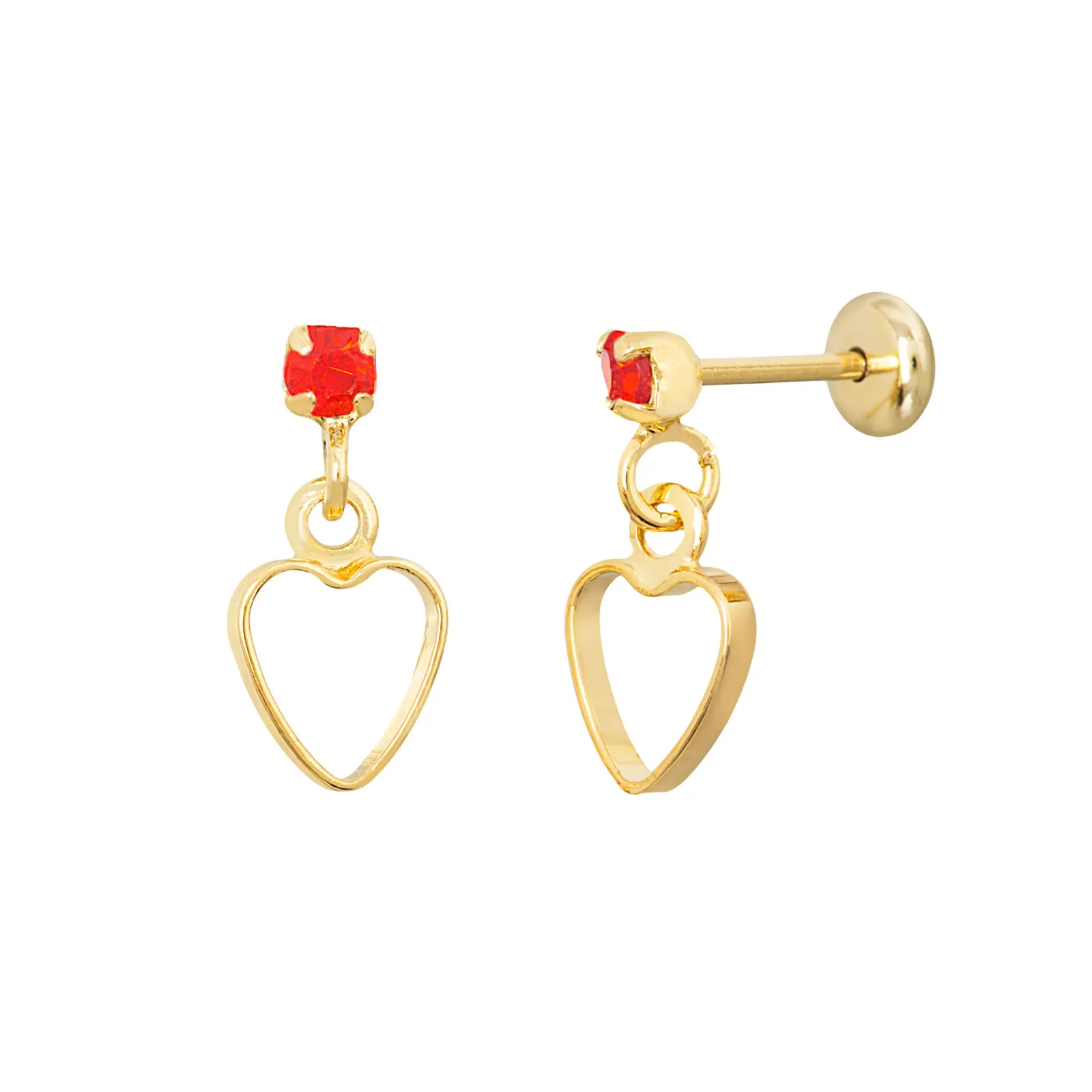 Brinco Coração Vazado com Pedra Vermelha