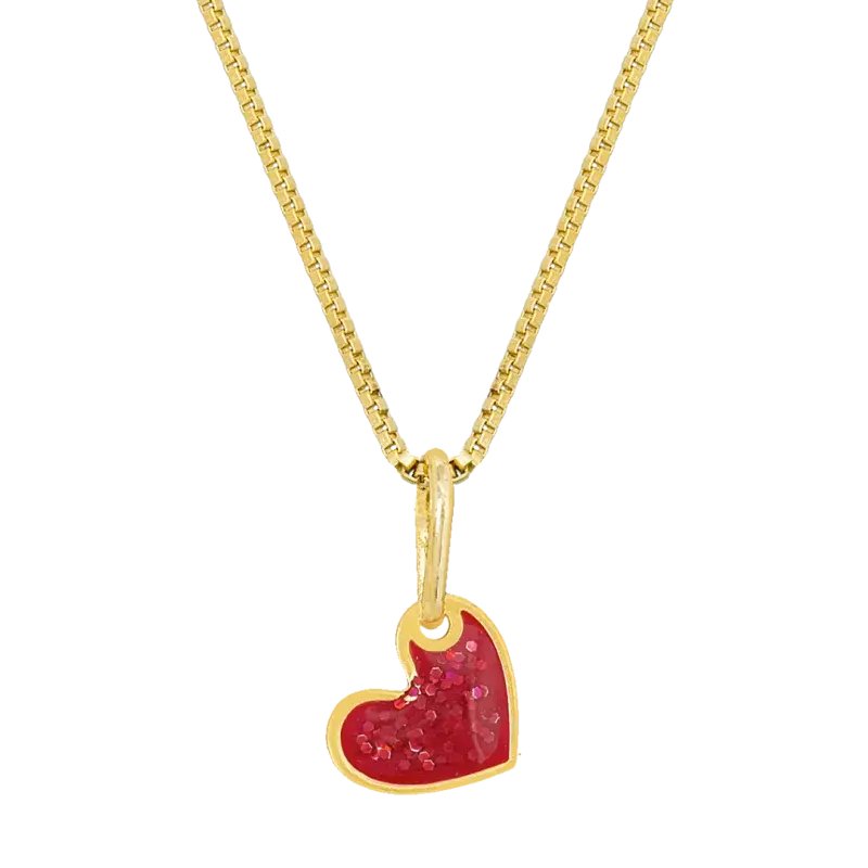 COLAR INFANTIL CORAÇÃO RESINADO COM GLITTER BANHADO EM OURO