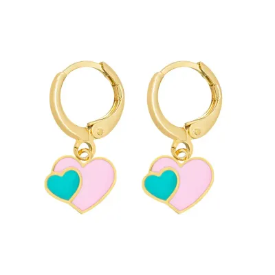 Brinco Articulado com Pedrinha Rosa e Bolinhas