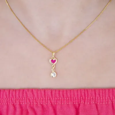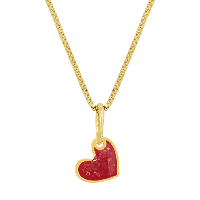 COLAR INFANTIL CORAÇÃO RESINADO COM GLITTER BANHADO EM OURO