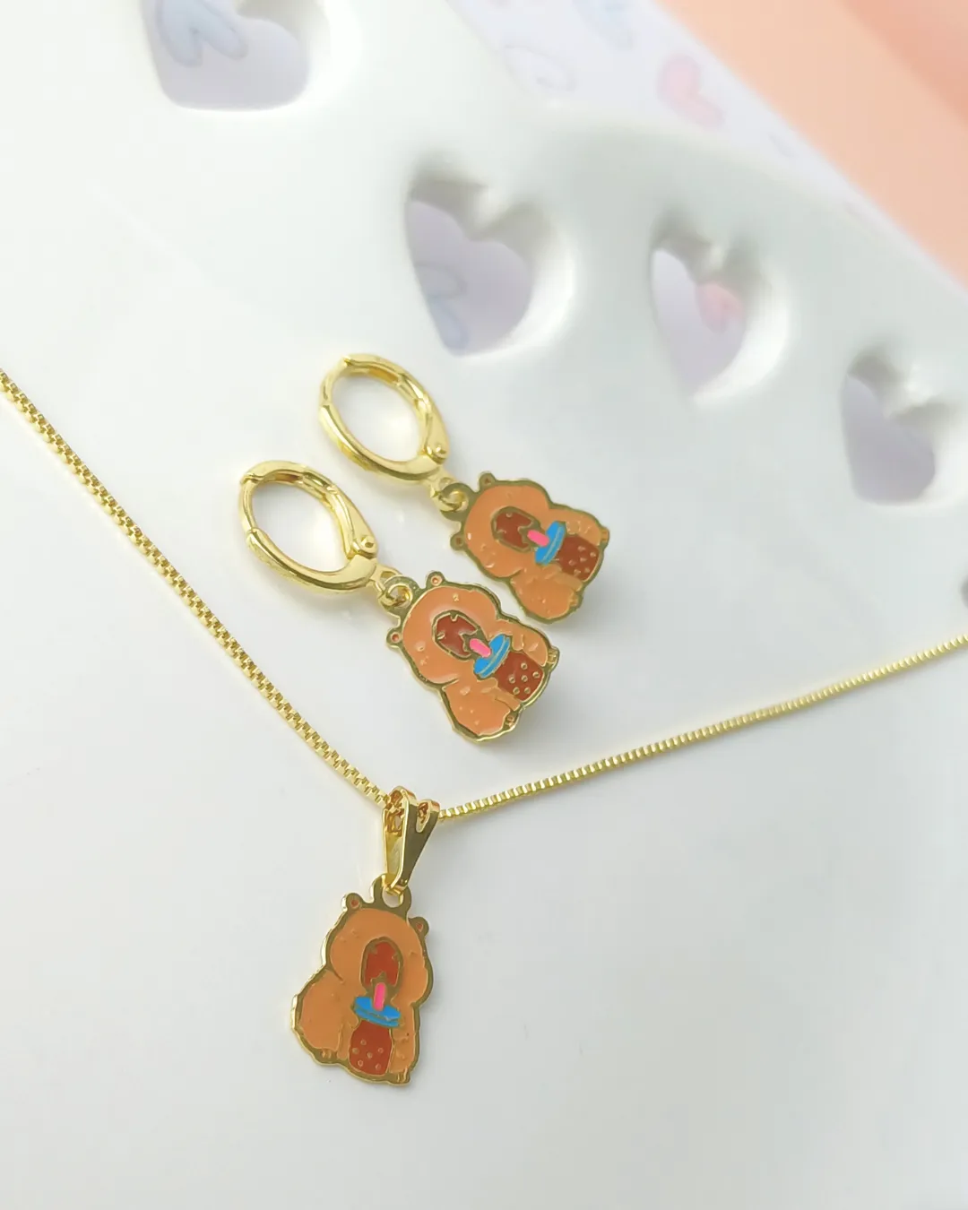 Colar Infantil Capivara Resinada Banhado a Ouro