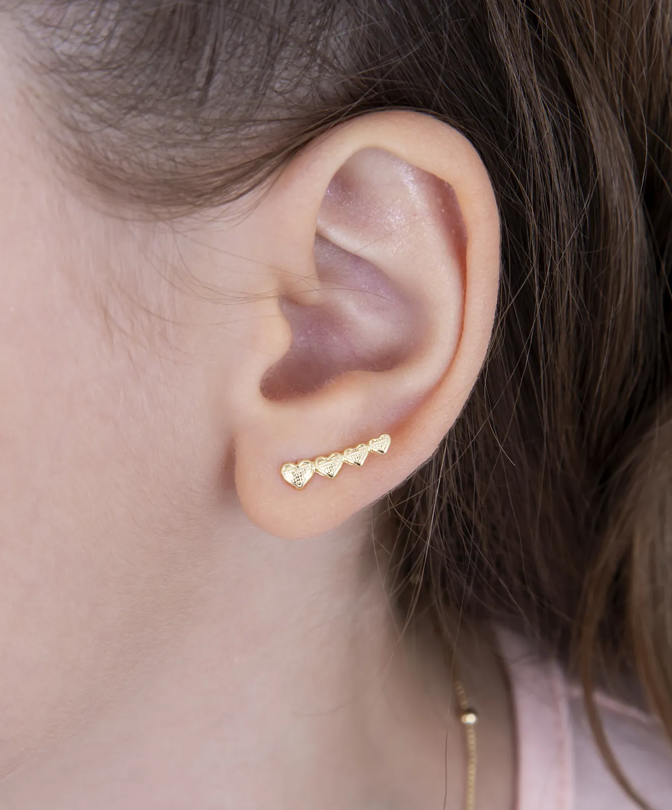 BRINCO INFANTIL EARCUFF DE CORAÇÕES BANHADO EM OURO