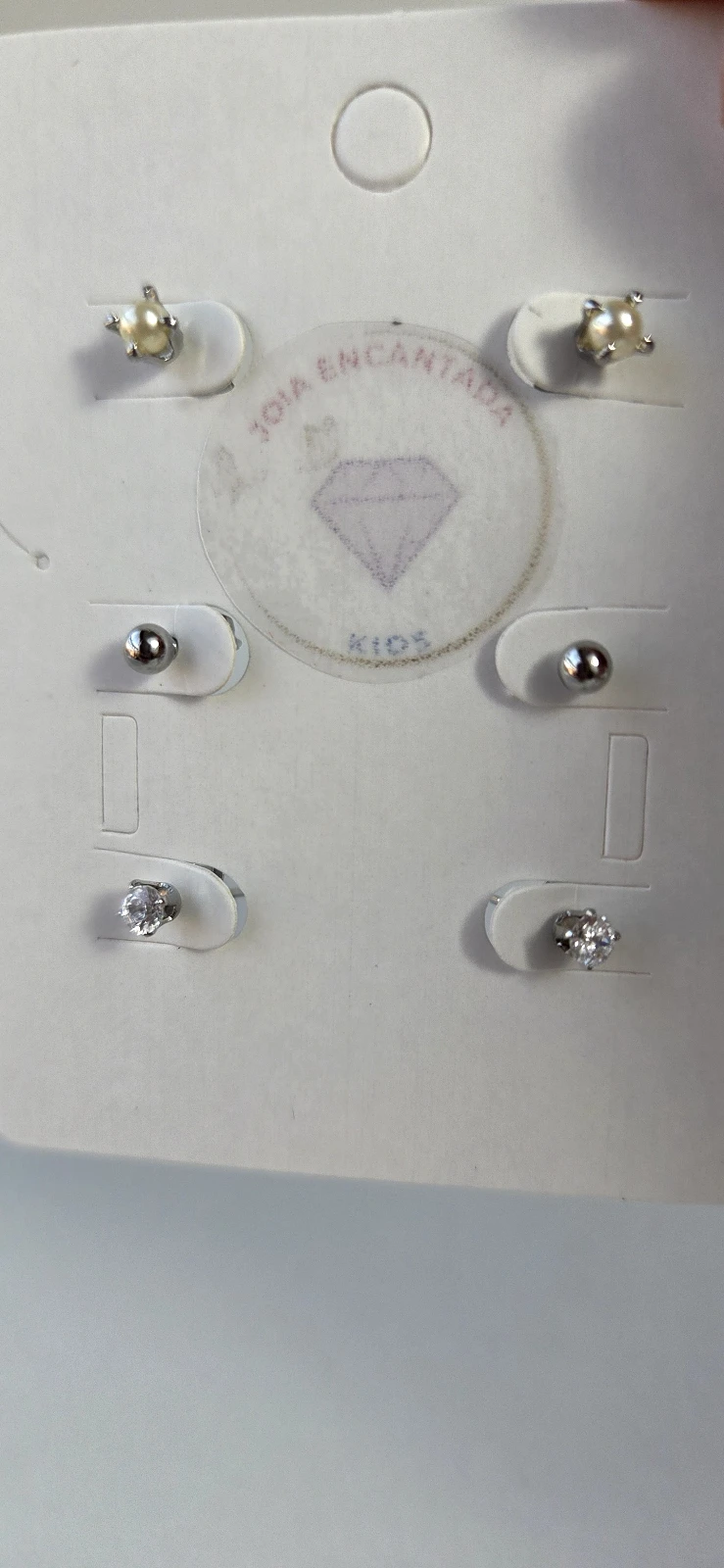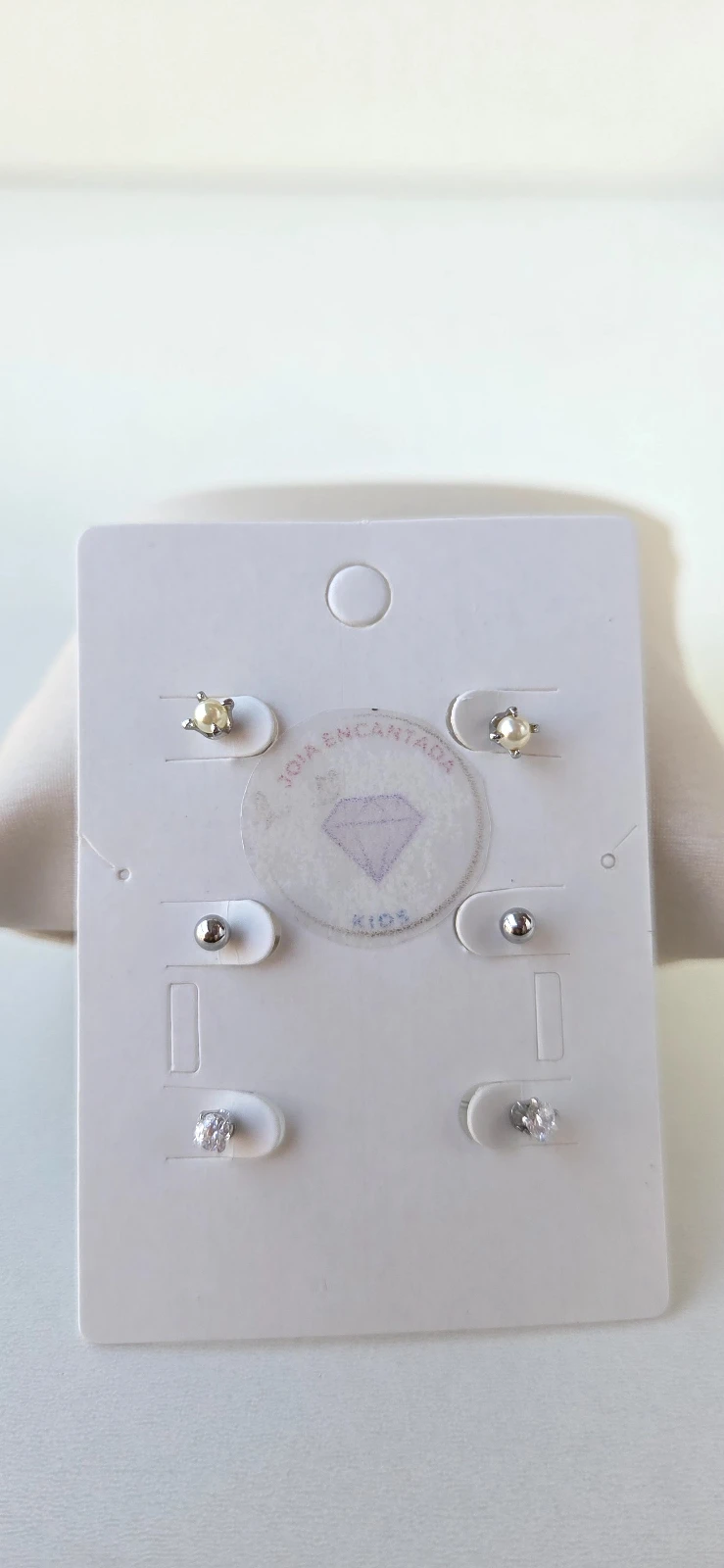 Trio Brinco bolinha, ponto de luz e perola aço cirurgico.316l