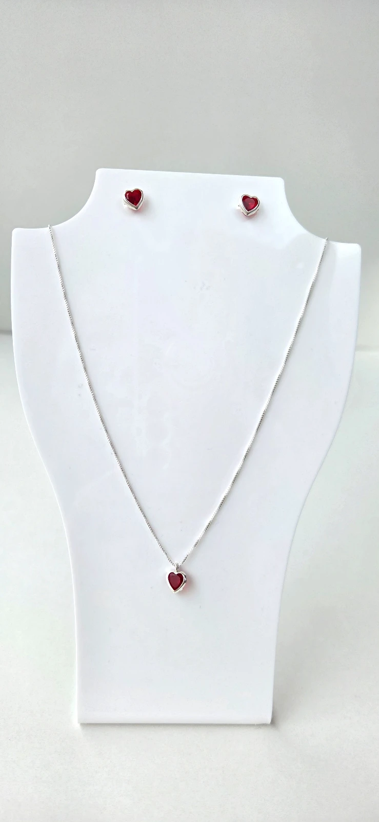 Conjunto Coração Rosa / Vermelho - Prata 925: Elegância e delicadeza em cada detalhe.