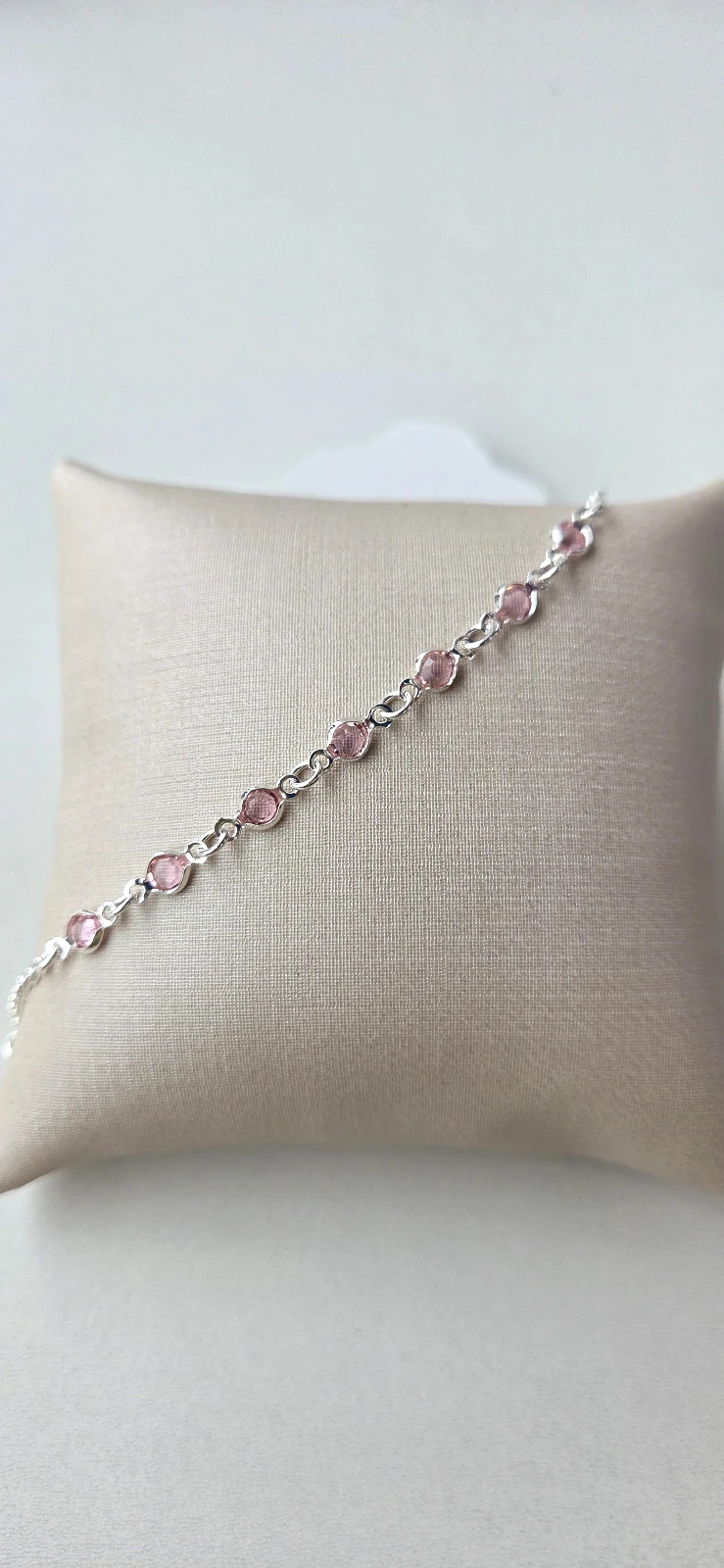 Pulseira Pedra Cristal ou Rosa - Elegância em Prata 925