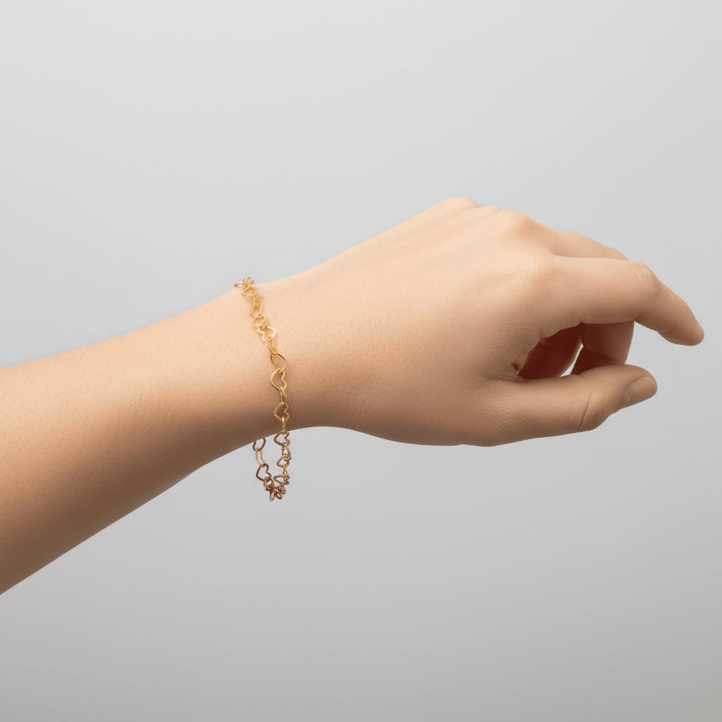 Pulseira Corrente de Corações Banhado a Ouro - Elegância e Delicadeza em Cada Detalhe.