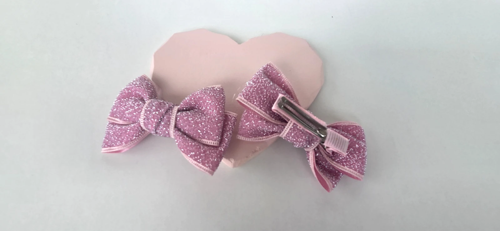 Laço Rosa Brilhante (par) — brilho sofisticado com bico de pato