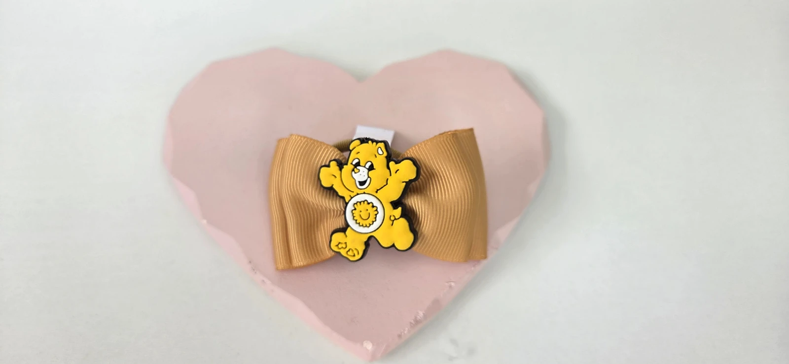 Laço de cabelo em fita bege com acabamento premium e aplique central de ursinho carihoso amarelo. Leve e macio, fixa com segurança e oferece conforto o dia todo, ideal para bebês e crianças. Perfeito para combinar com vestidos neutros, festas ou uso diário, trazendo um toque fofo e elegante ao visual. Um presente encantador para quem valoriza estilo e praticidade.