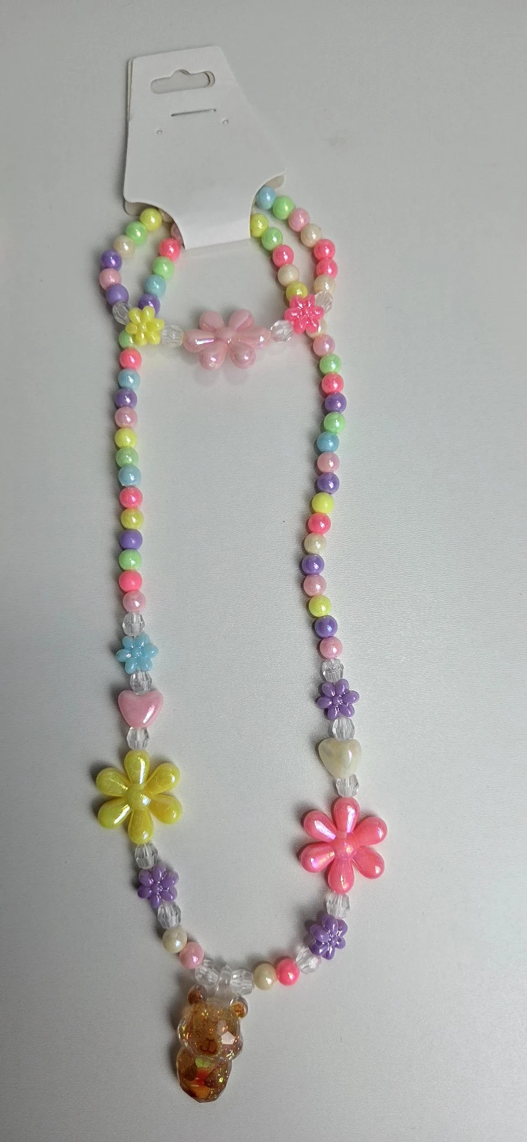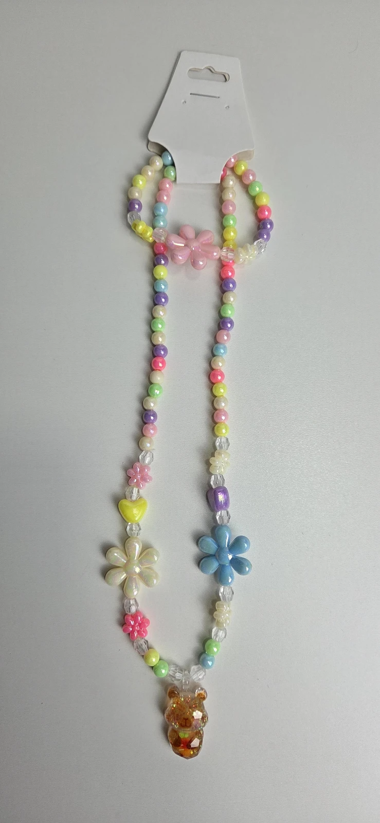 Colar infantil feito com miçangas coloridas em tons pastel, decorado com várias flores e um pingente da Capivara. Ideal para compor looks divertidos no dia a dia, festas ou lembrancinhas. Leve, seguro e confortável, com fecho simples para vestir sem esforço. Um acessório encantador que adiciona doçura e estilo ao visual das brincadeiras da criançada.