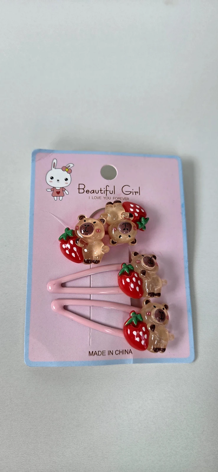 Conjunto de 2 elásticos e 2 tic tac da capivara, em plástico translúcido e acabamento brilhante. Prendem com firmeza sem puxar os fios, ideais para crianças e uso diário. Com design fofo e colorido, é perfeito para school looks, festas ou brincadeiras. Fácil de combinar com qualquer look e excelente presente.