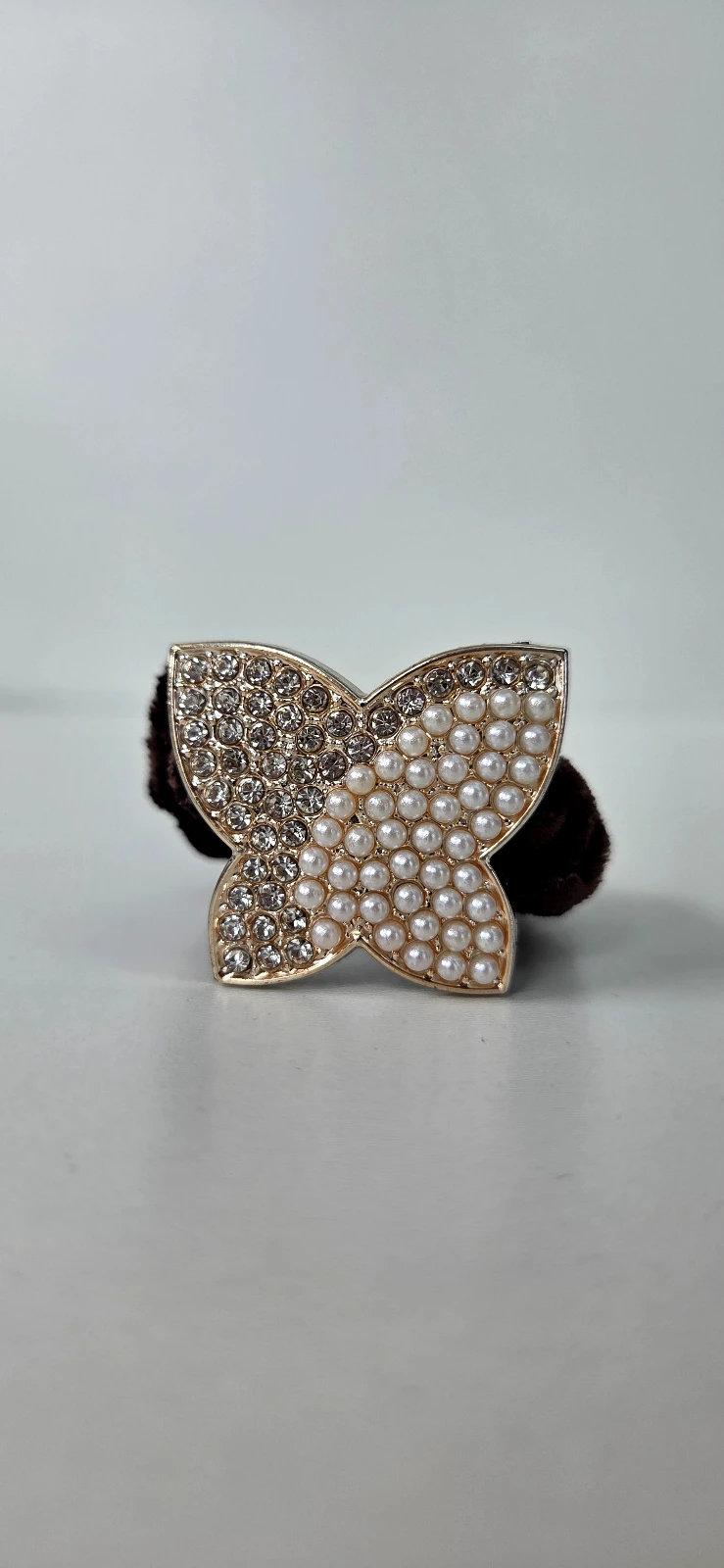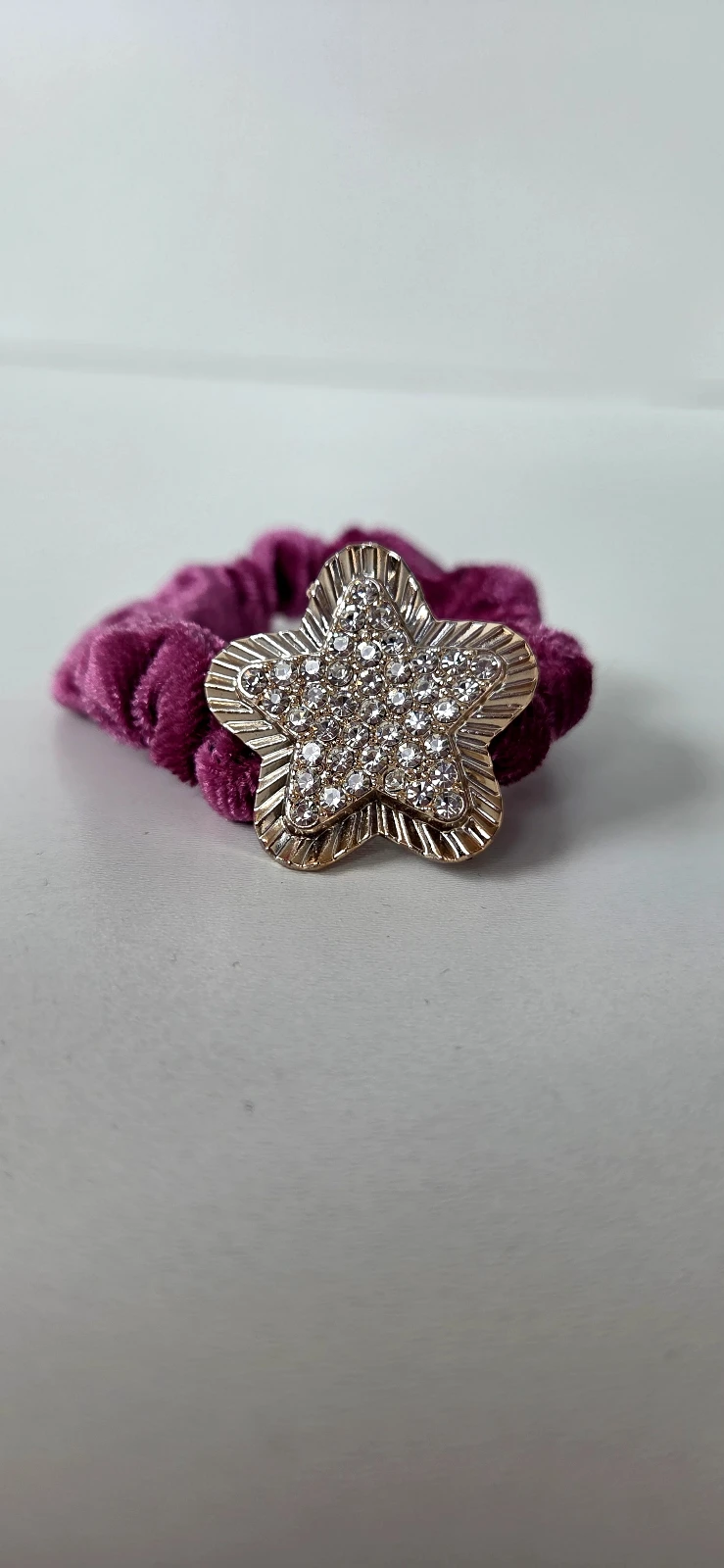 Elástico luxo de veludo para cabelo, cada um com aplique brilhante.